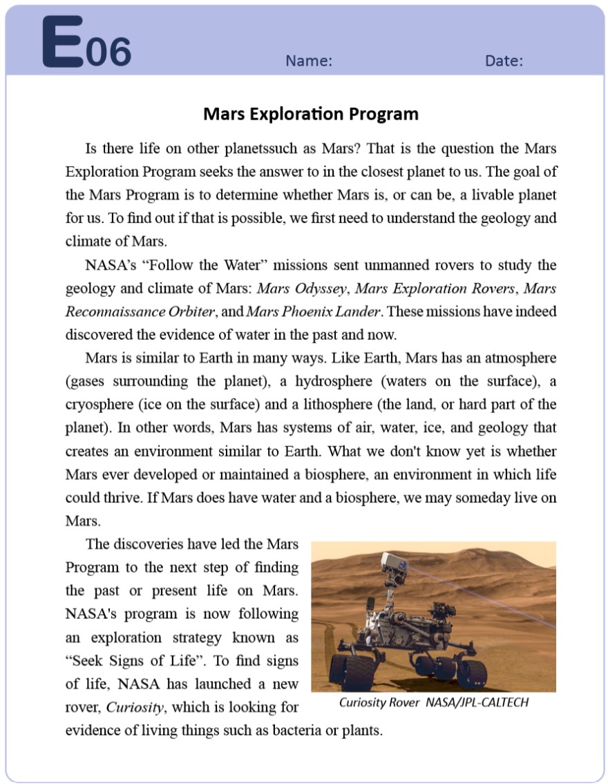include literature, science, and history. Texts are rich and challenging, and comprehension questions include multiple choice, short answer, and open-ended questions.
