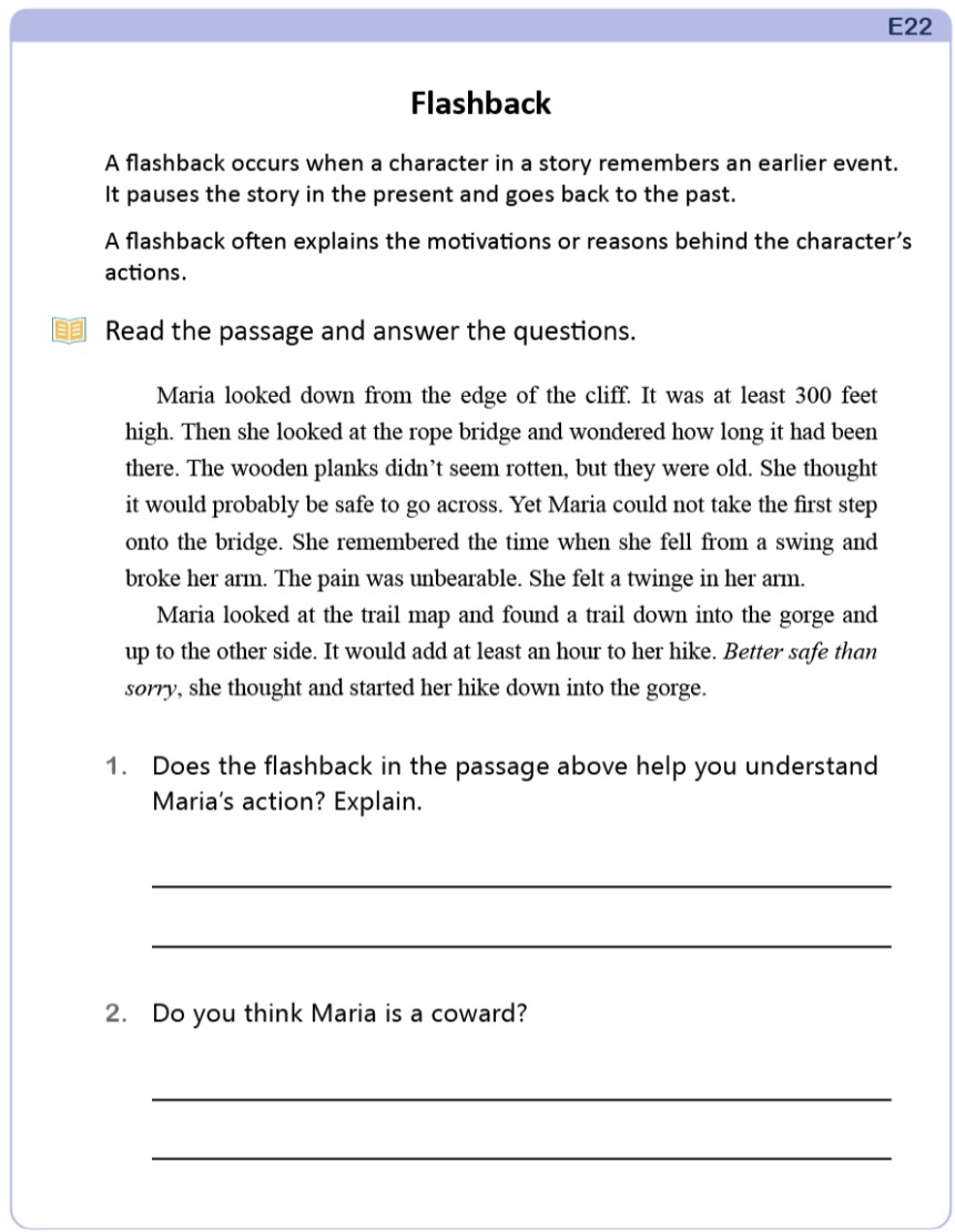 - Reading Skills Reading skills are introduced to guide students to become analytical readers. Skills include flashback, foreshadowing, drawing a conclusion, and point of view.