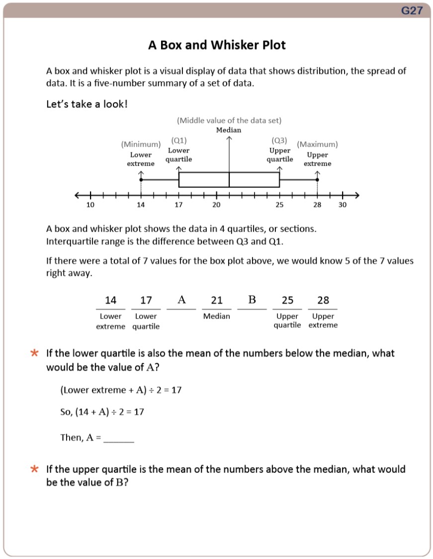 - Statistics & Probability Sampling and inference; box plot; probability and frequency